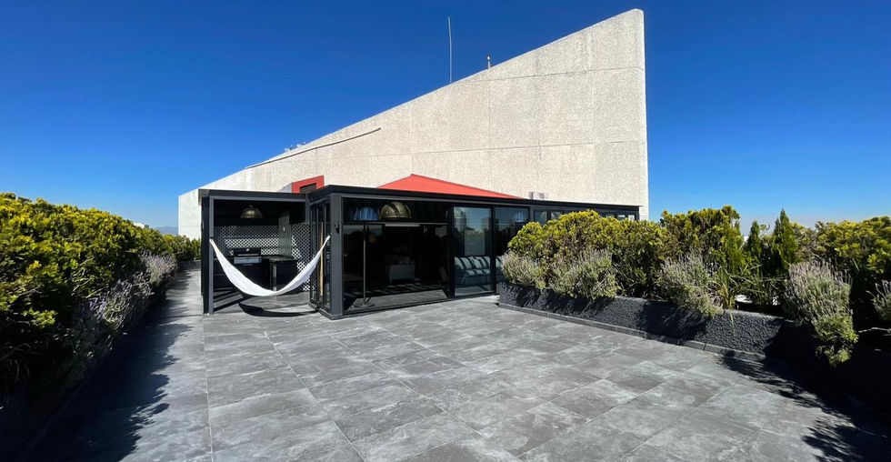500 m2 mas 160 m2 de terraza, 3 recamaras, cuarto de TV, gym, sala, comedor, 2 medios baños, cocina equipada con refrigerador y congelador subzero, 2 hornos, lavavajillas, wine cooler, lavadora, secadora y TVs en todas las habitaciones, cuarto de lavado y cuarto de servicio con baño completo integrado, bodega en el departamento y una bodega en el edificio. La terraza con asador/cocina y sala. 4 estacionamientos.